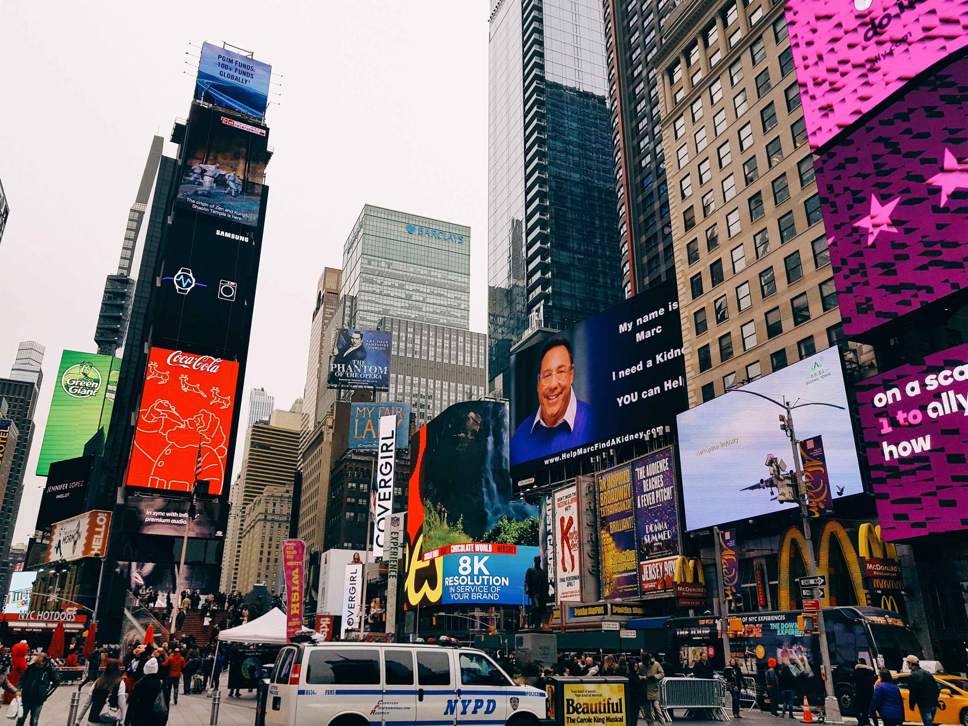 맨해튼의 명물, 타임스퀘어가 근처 걸어갈 수 있는 거리에 있어서 걸어서 이동했다. 냉정히 말하면 그냥 전광판 아주 많은곳일 뿐인데, 사람이 꽤 많았다. 여하튼 영화에서 흔히 보던곳에 서있으니 느낌이 묘하다.