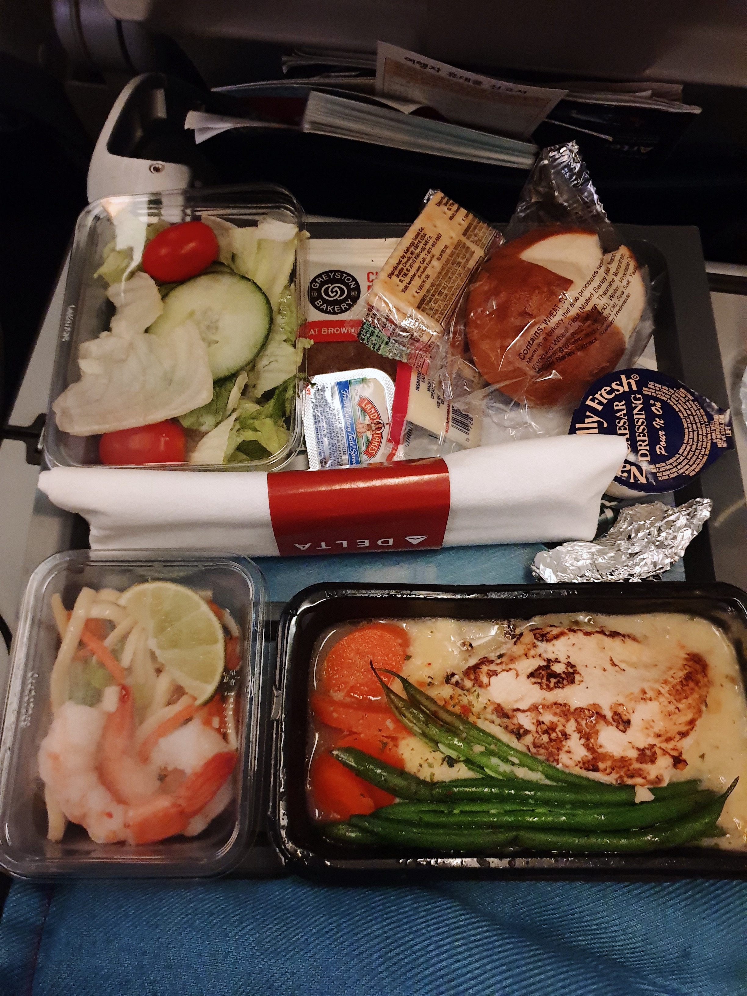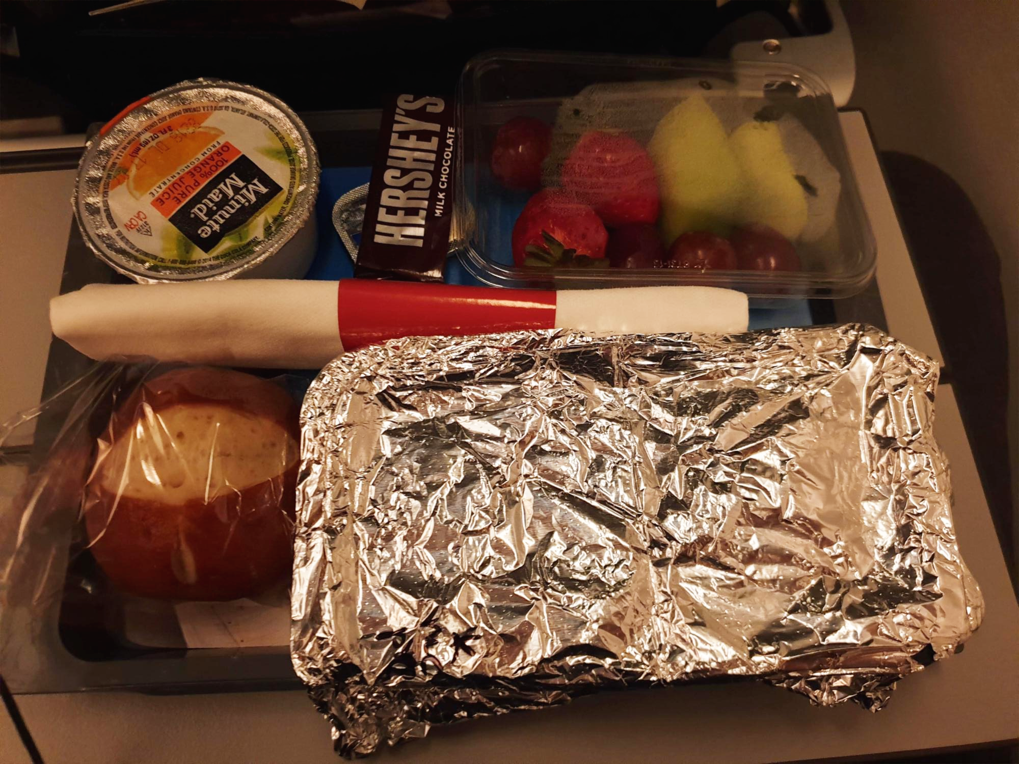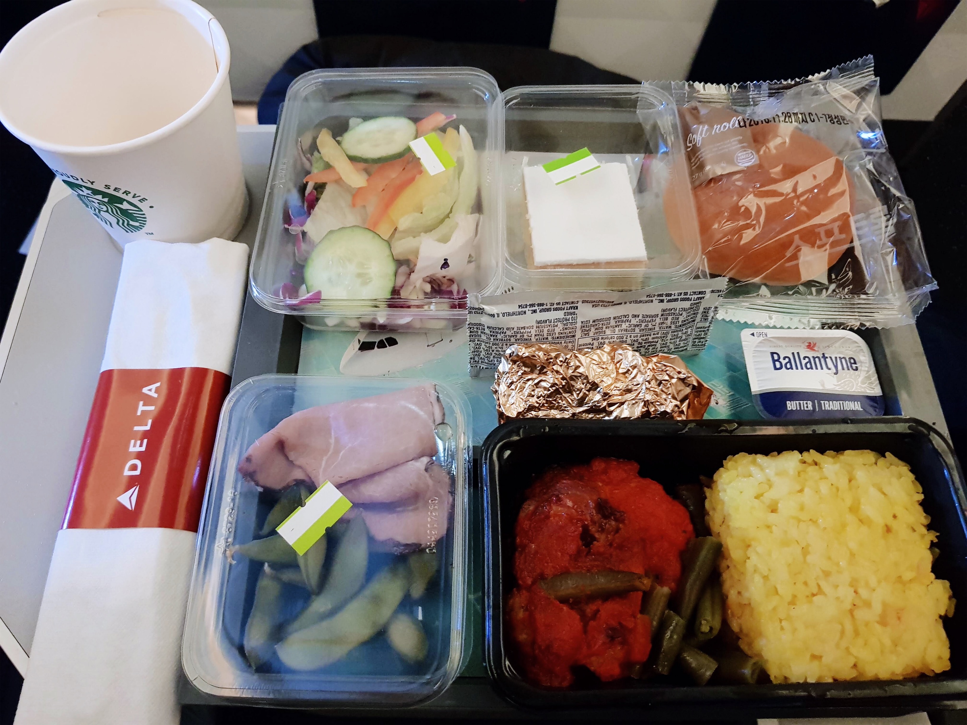 10시 50분 출발 비행기였고, 기내식은 출발하고 3시간후, 도착하기 3시간전에 나왔다. 중간에는 간식이 나온다. 그리고 중간중간에 카트를 끌고 다니면서 마실것을 주문할 수 있다. 물론 무료다.