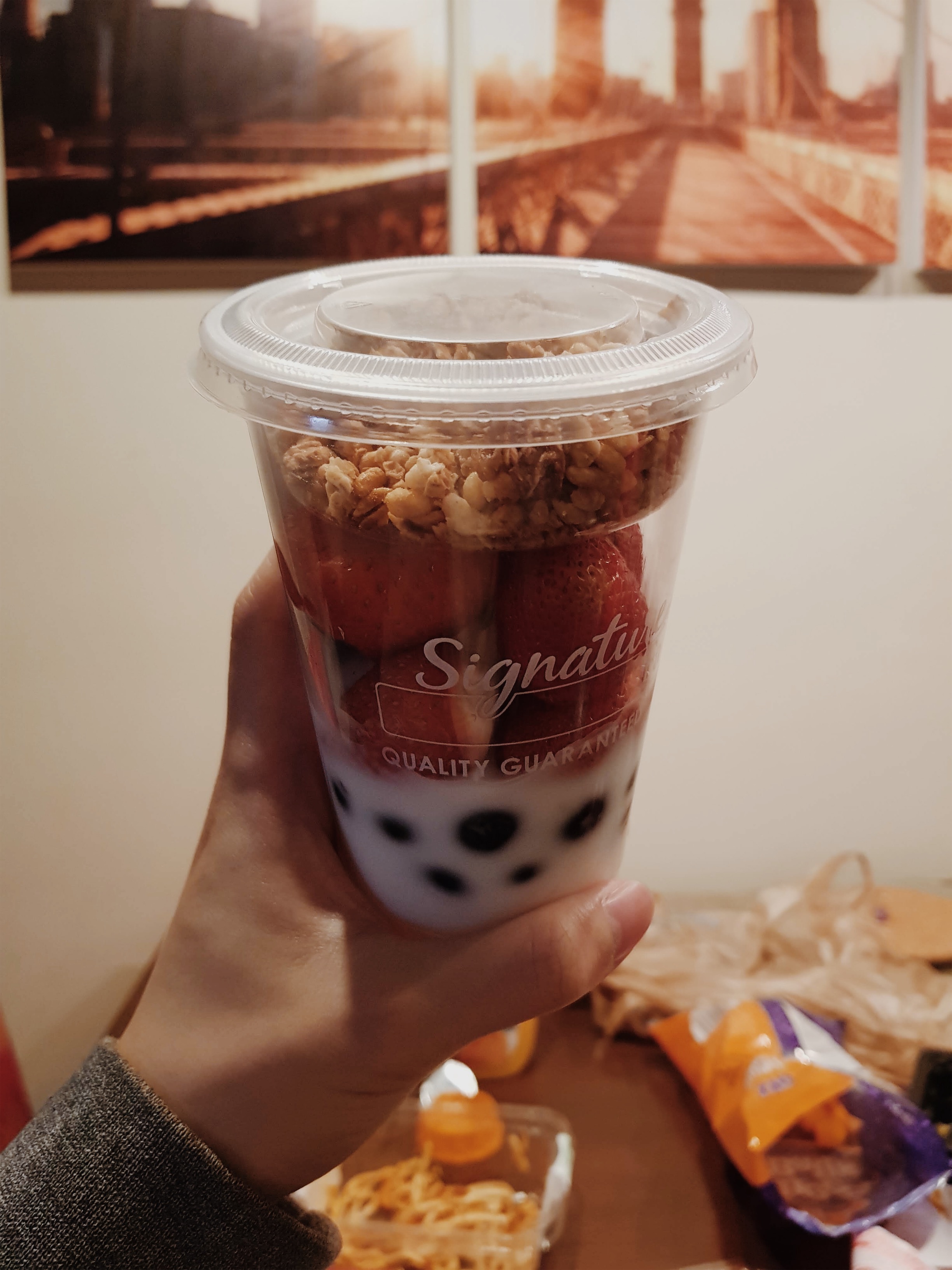 5시 15분에 일어나서 아침은 마트에서 사뒀던 과일컵을 먹었다. 계속 이런거 먹는거 같은데, 이게 가성비가 좋다.