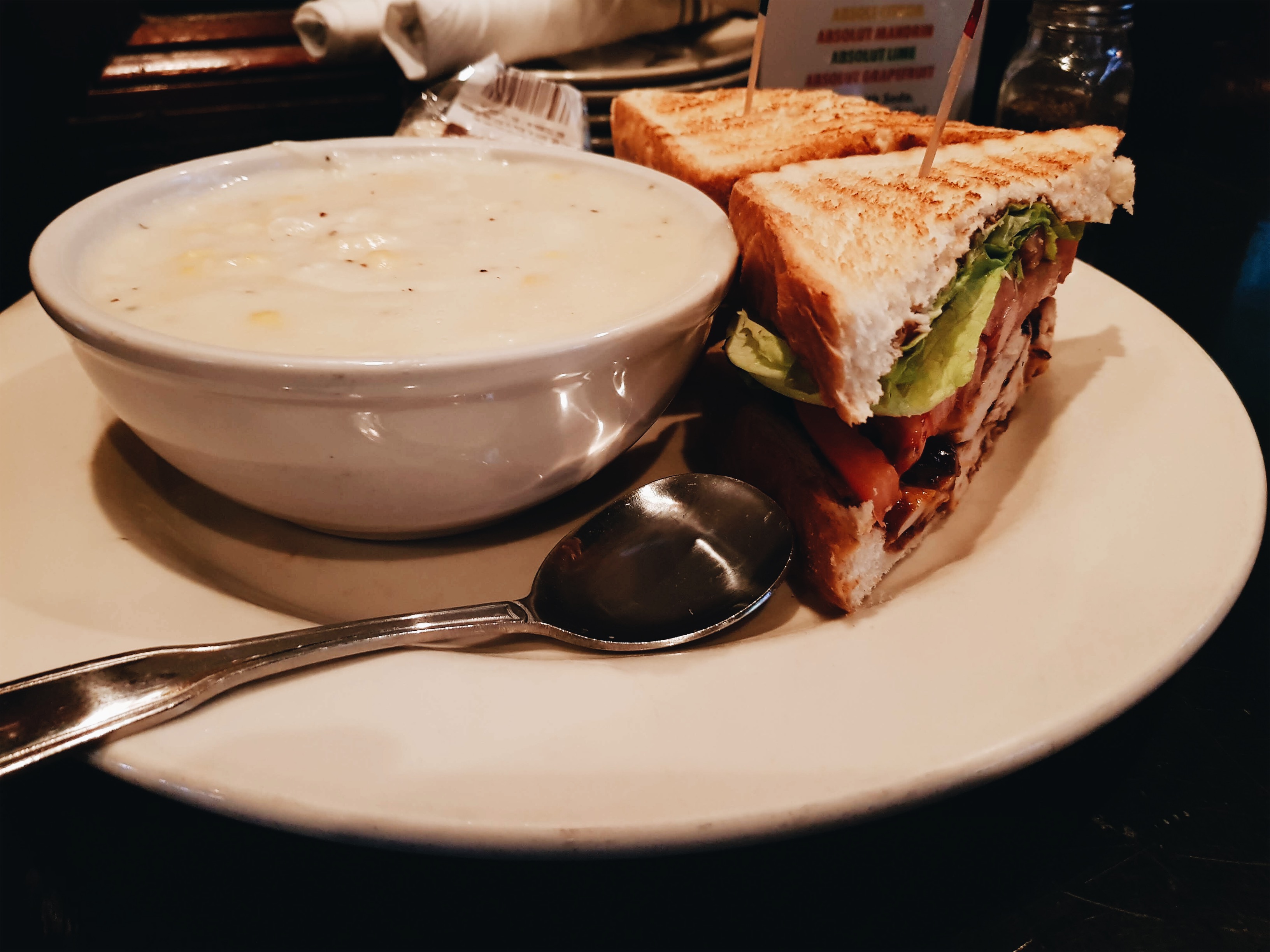 스테이크에 스프종류의 요리를 시켰는데, 거의 $55 넘게 나왔다. 보통 스테이크 하나만 시키는 것이 아니라 에피타이저와 같이 가벼운 요리를 하나 더 시켜야 하기 때문에 생각보다 많이 지불하게 된다.
