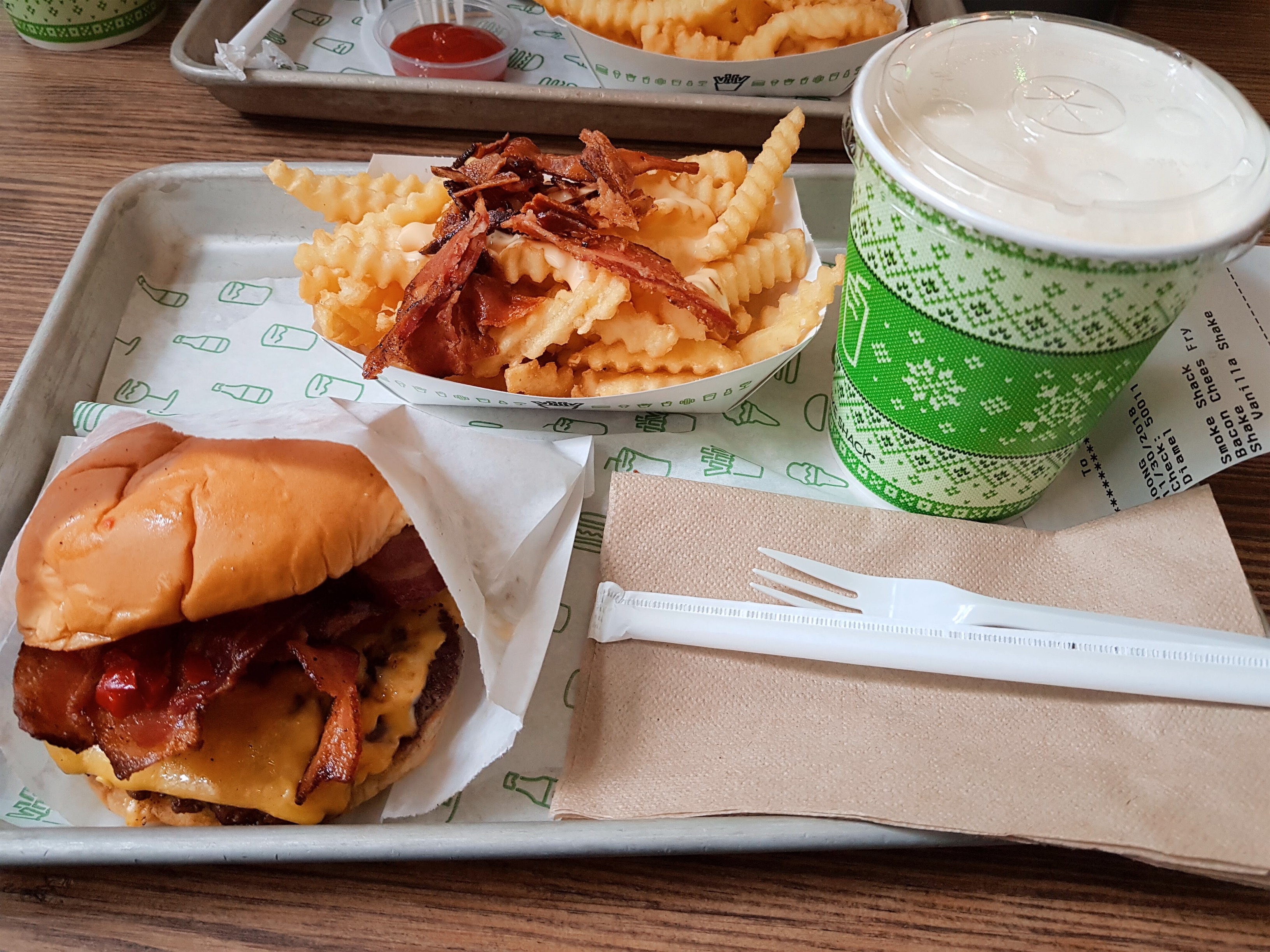 가는길에 공사하는곳이 있어서 꽤 돌아가야 했다. 베이컨치즈버거 그리소 쉐이크를 시켰는데 당황해서 햄버거 토핑추가는 못했다.
