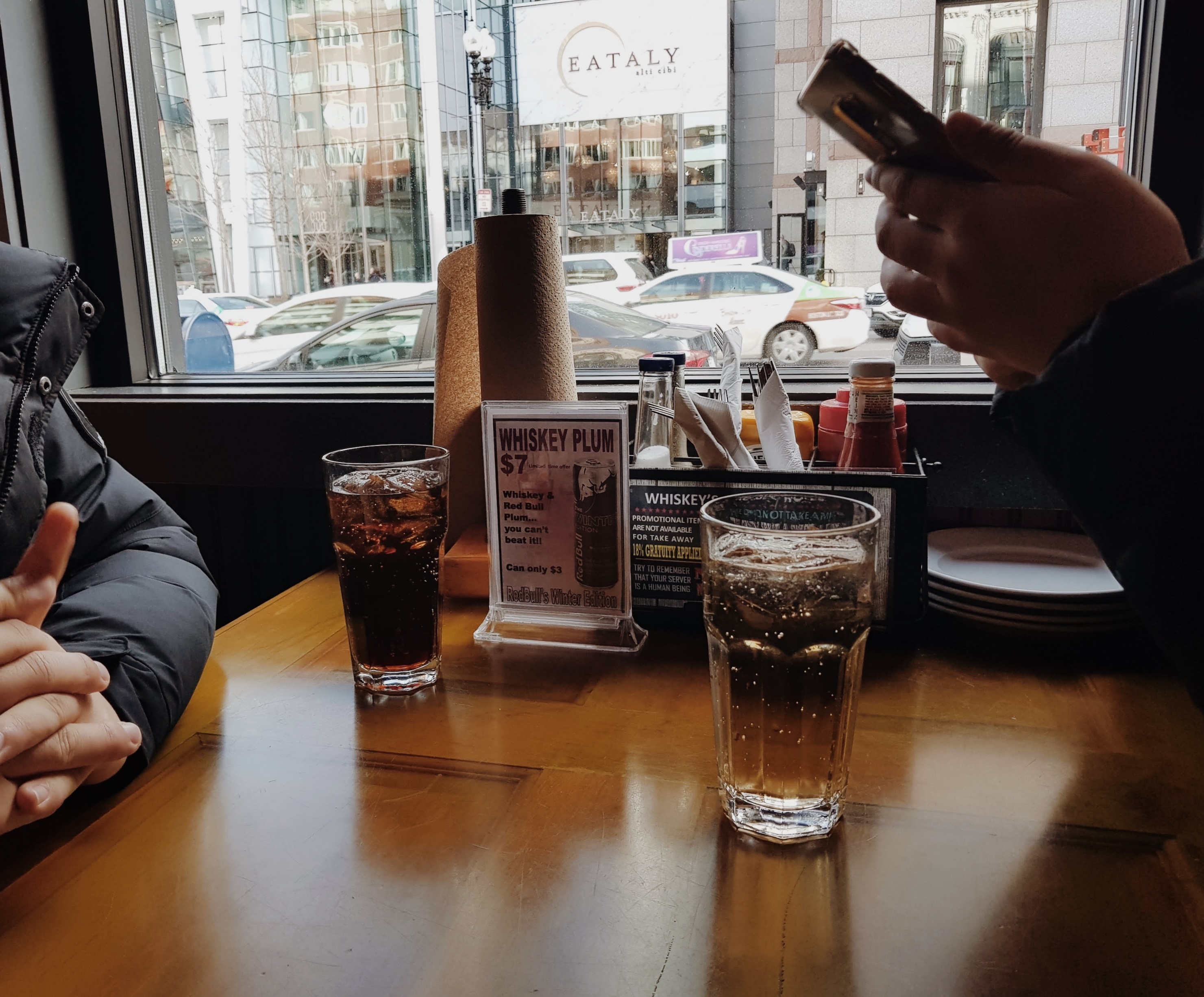 샌드위치+감자튀김+레모네이드가 $15쯤. 앤틱한 디자인에 천장에 TV 달려있고 술도 팔고 샌드위치와 각종 요리가 있는, 정말 영화에서 보던 그런 음식점이었다.