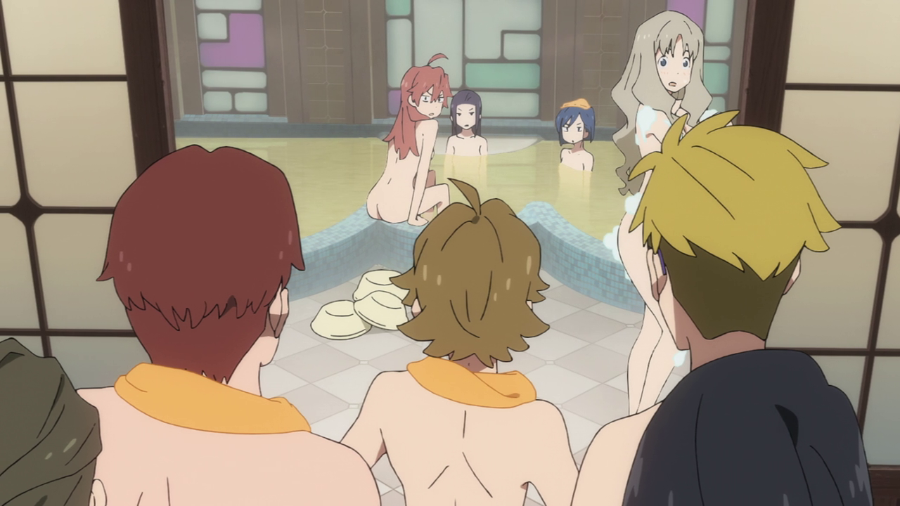 사람이 현실에서도 어느 정도 스테레오 타입이 있는 것에는 동의한다. 대중을 휘어잡는 카리스마 넘치는 사람이 눈물이 많다던가, 목소리가 굉장히 여리던가 하는 반대되는 성향을 동시에 가지지는 않으니까, 원래 사람 타입은 거기서 거기라고 볼 수도 있다. 하지만 적어도 유사한 캐릭터를 가지고 풀어내는 이야기를 통해 더욱 매력적으로 보이게 하는 것이 스토리를 짜는 사람의 임무일 텐데, 목욕탕에서 알몸으로 남녀가 마주친다던가, 휴가 시즌에 남녀 모두가 바닷가로 놀러가서 물장구치는 걸로 한 화를 차지한다거나 하는 흔한 일본 애니메이션의 클리셰를 그대로 갖다 박으면서 트리거는 자신들의 장기만을 골라 태워버린 셈이다.