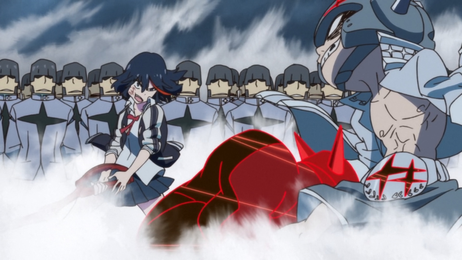 킬라킬이 사람들을 빠지게 만든 주된 이유는 '병맛 같으면서도 참신하기 때문'이다. 이전 글에서도 언급했다시피, 마냥 막장으로 웃게 만들기 위한 병맛과는 다른, 그들만의 매력이 있다는 뜻이다. 열혈, 투지, 열정 등으로 대표되는 일본 애니메이션 특유의 분위기는 꽤 진지해야 할 법한 장면에서도 병맛의 향기가 솔솔 나고, 특히 그러한 점은 "인류가 문명화 되면서 옷을 입었다"는 통념과는 정 반대로 "외계 생명이었던 섬유가 의복으로써 인류에게 내려와 문명화시켰다"는 식의 비틀기에서 두드러진다. 이러한 극중 설정은 말도 안되는 억지임을 알고 있음에도 팬들에게 그들만의 아이덴티티로 각인시켰으며, 자연스레 이러한 것들을 이번 작에 기대했을 것이다.