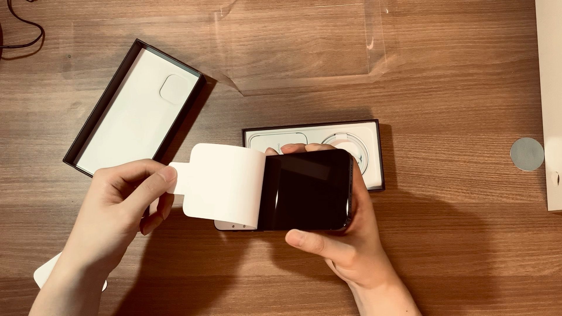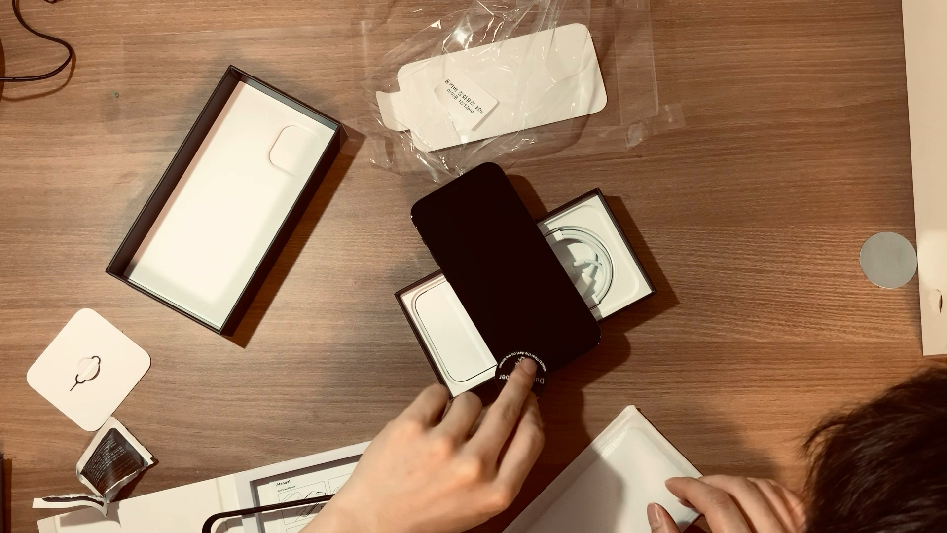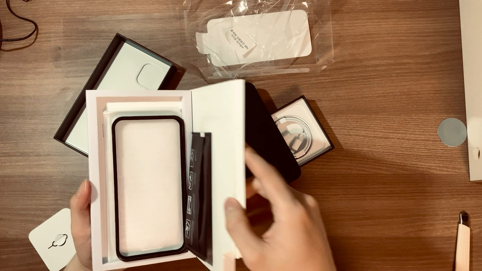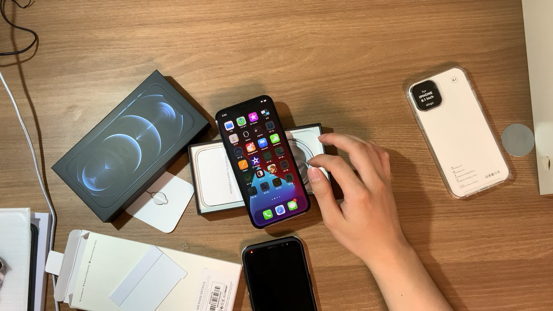 이번에는 이 역사적인 개봉순간을 일일히 찍기 귀찮아서 아이패드 영상으로 찍었다. 첫 포장은 정말 충전기가 없어진 만큼 얇았다. 그리고 위에서 영상찍으면서 개봉하는거 은근 불편하다... 내가 보는 각도와 영상 각도가 다르니까 손 위치가 너무 어정쩡해... IT유튜버들도 이런걸까?