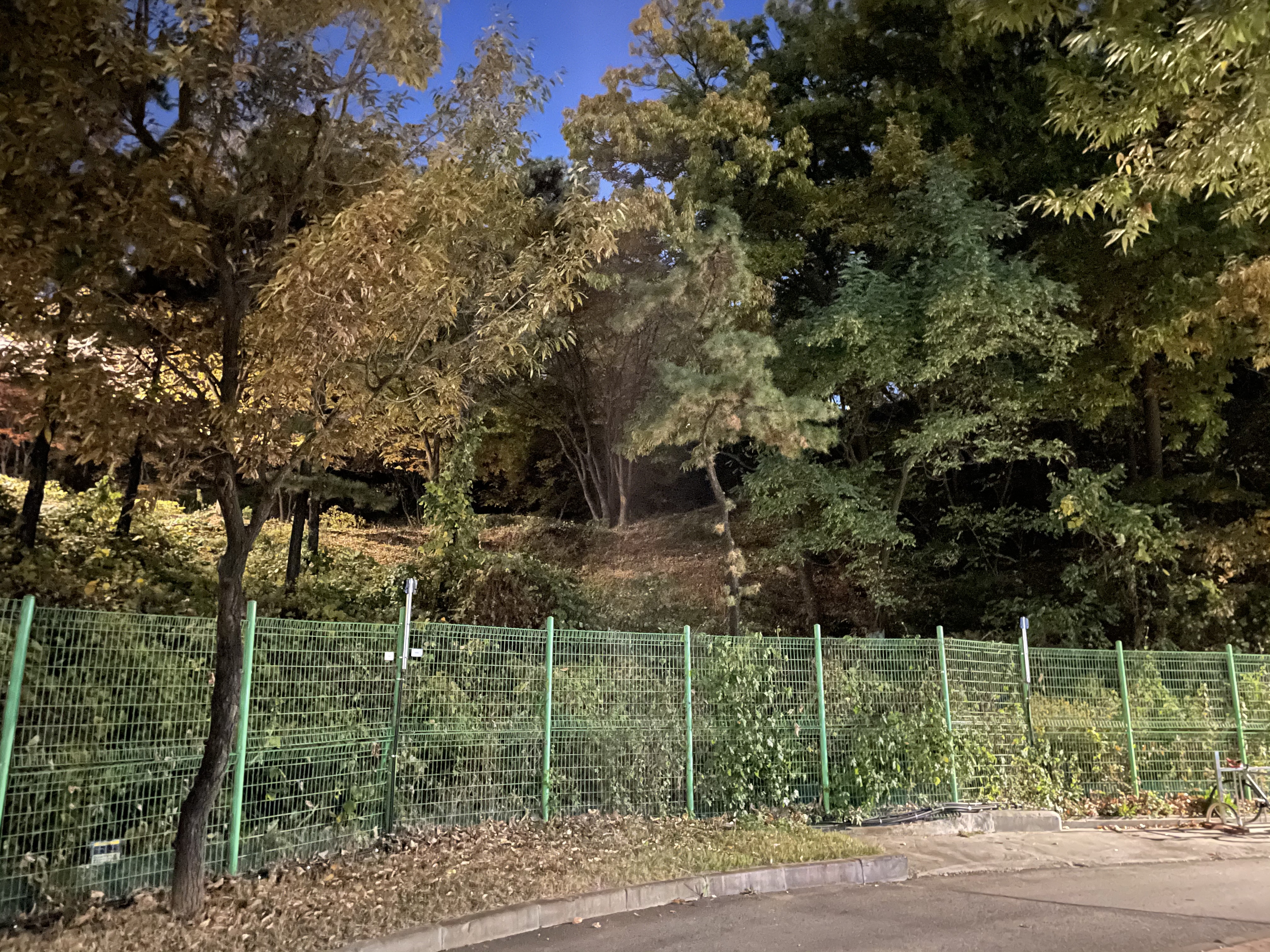 3년이 넘은 폰과의 비교가 무슨 의미가 있을까 싶지만, 어쨌든 왼쪽이 갤럭시S8이고 오른쪽이 아이폰 12 프로다. 확실히 야간사진에서 디테일이 확실히 다르다. 갤럭시S8을 샀을 때에도 이미 낮에 찍는 사진은 상향 평준화가 될 대로 된 상황이었는데, 요새 스마트폰은 그걸 넘어서 동영상과 야간사진으로 우열을 가리더라. 시간 참 빠르다. 왼쪽의 갤럭시 사진 만으로도 눈으로 보는 풍경보다 충분히 밝게 찍힌 사진이다. 실제로는 그냥 어두운 조명없는 밤이다.