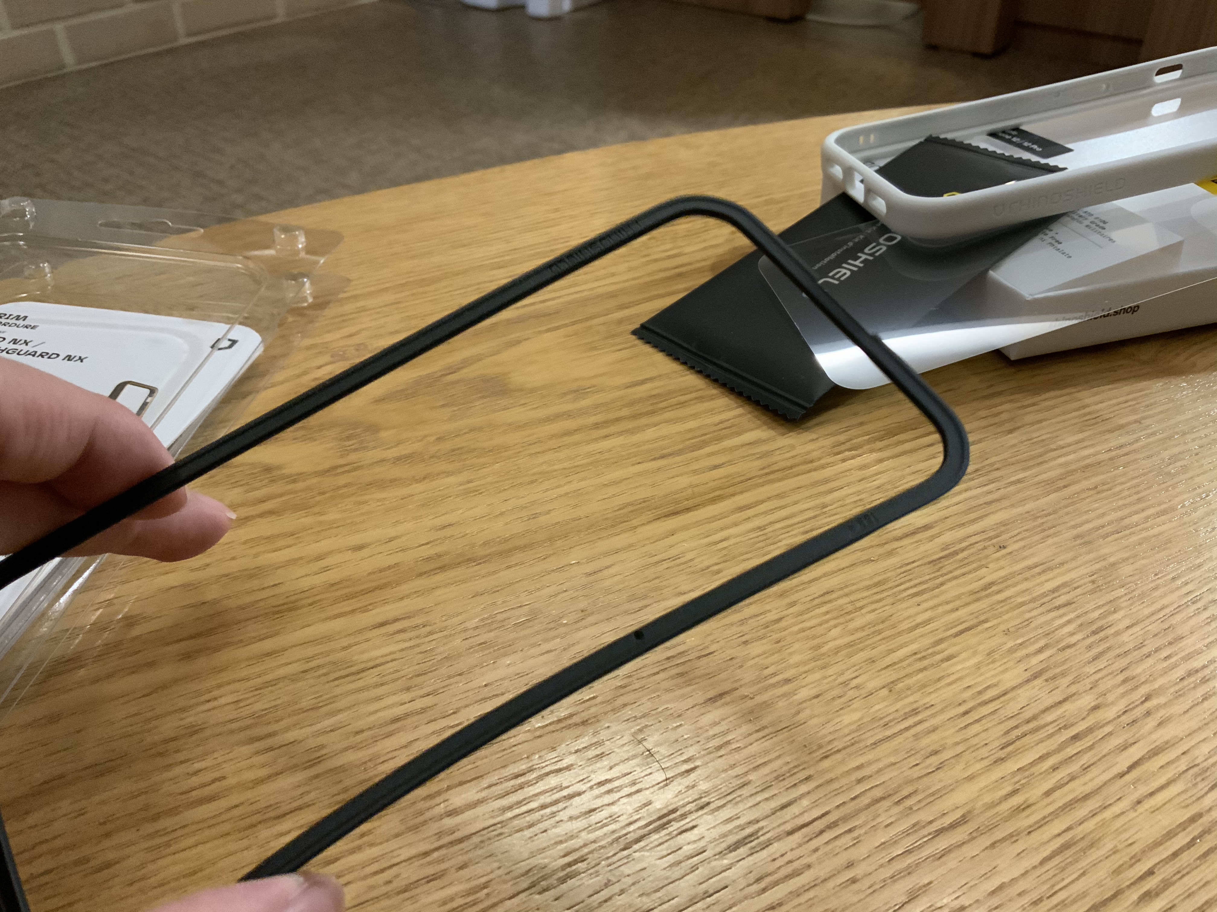 뭔가 사진 순서도 뒤죽박죽인데, 어쨌든 보호필름을 붙이고 안전히 붙은 것을 확인한 뒤에 안심하고 있는 장면이다. 보호필름은 내가 직접 붙여야 해서 부착가이드?가 동봉되어 있는 것으로 샀다. 폰에 딱 맞게 틀이 되어서 어긋나지 않게 쉽게 붙일 수 있다.