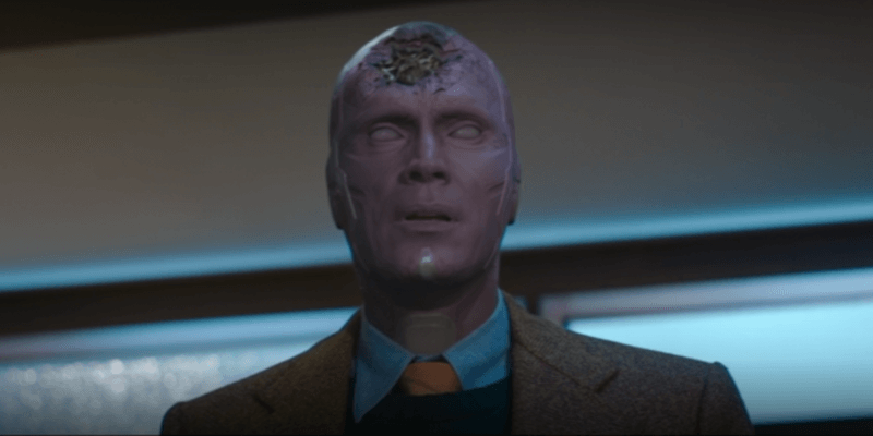 이렇게 가볍고 소소한 이야기들로 작품의 전반부를 채워나가지만, 그걸 지켜보는 우리는 마음 한켠으로 꺼림칙함과 불편함을 떨쳐내기 힘들다. 이미 어벤져스 시리즈를 알고 있는 우리는 비전은 이미 죽었기에 완다와 비전은 이미 이뤄질 수 없는 관계이며, 따라서 지금 우리가 보고 있는 이 모습은 가짜이고 만약 비전이 엔드게임 이후에도 살아있다면 이 커플은 이렇게 살고 있겠지 하는 씁쓸함을 불러오기 때문이다.