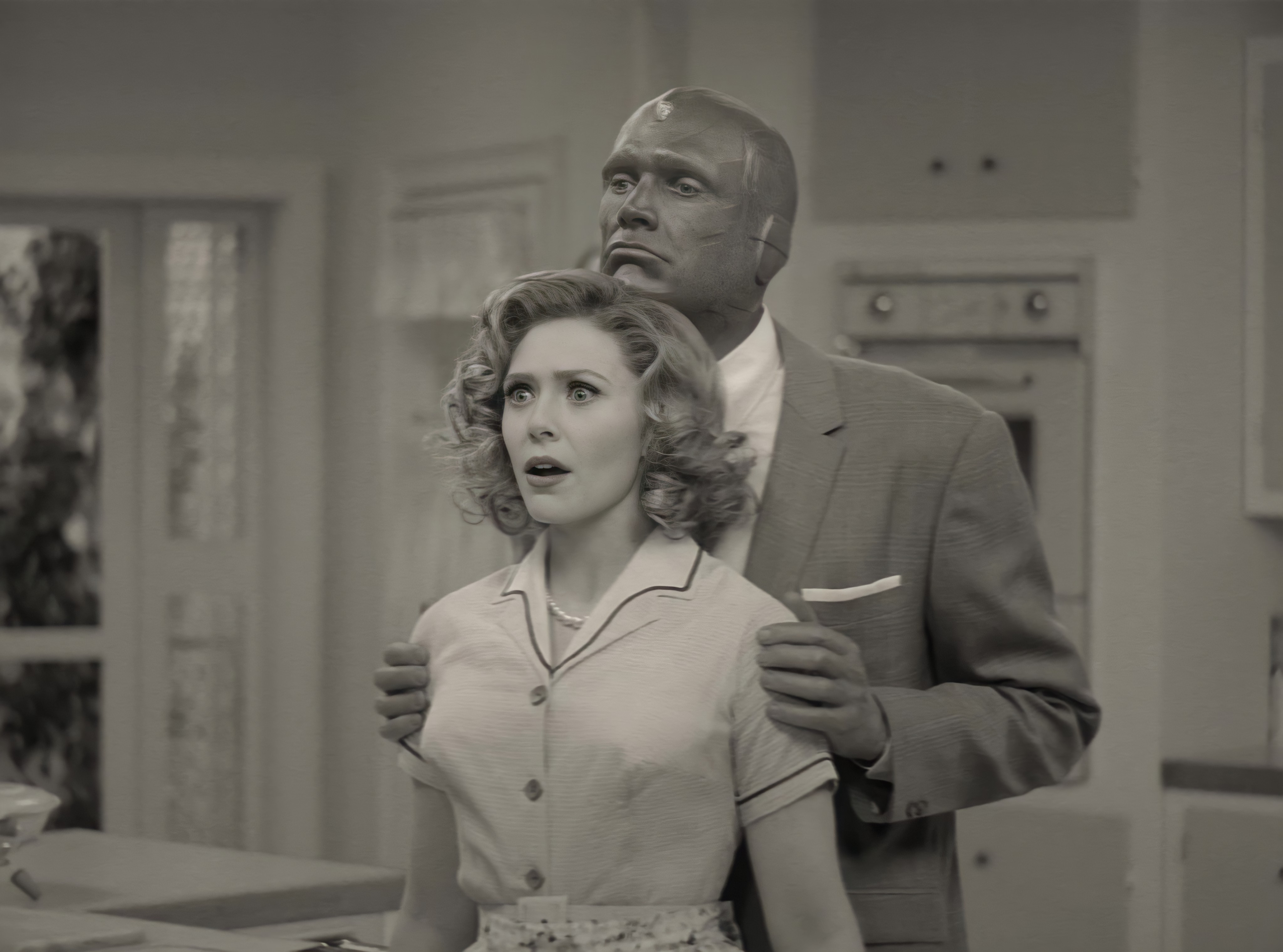 시작은 별다른 설명도 없이 1950년대 전형적인 미국의 흑백 시트콤처럼 시작한다. 여느 단란한 가정과 다르지 않게 완다와 비전이 신혼생활 중 웨스트뷰로 이사 온 직후다. 마블 영화를 접해온 관객이라면 틀림없이 첫 장면부터 적지 않은 당황을 하게 될 것이다. 단순히 흑백과 요즘 영상비율에 맞지 않은 4:3 비율이기 때문만은 아니고, 분명 마인드스톤이 파괴되어 죽은 비전이 아무 일 없다는 듯이 완다와 결혼생활을 꾸리고 있기 때문이다.